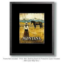 Cowgirl and Her Horse – Montana Souvenir Art Print