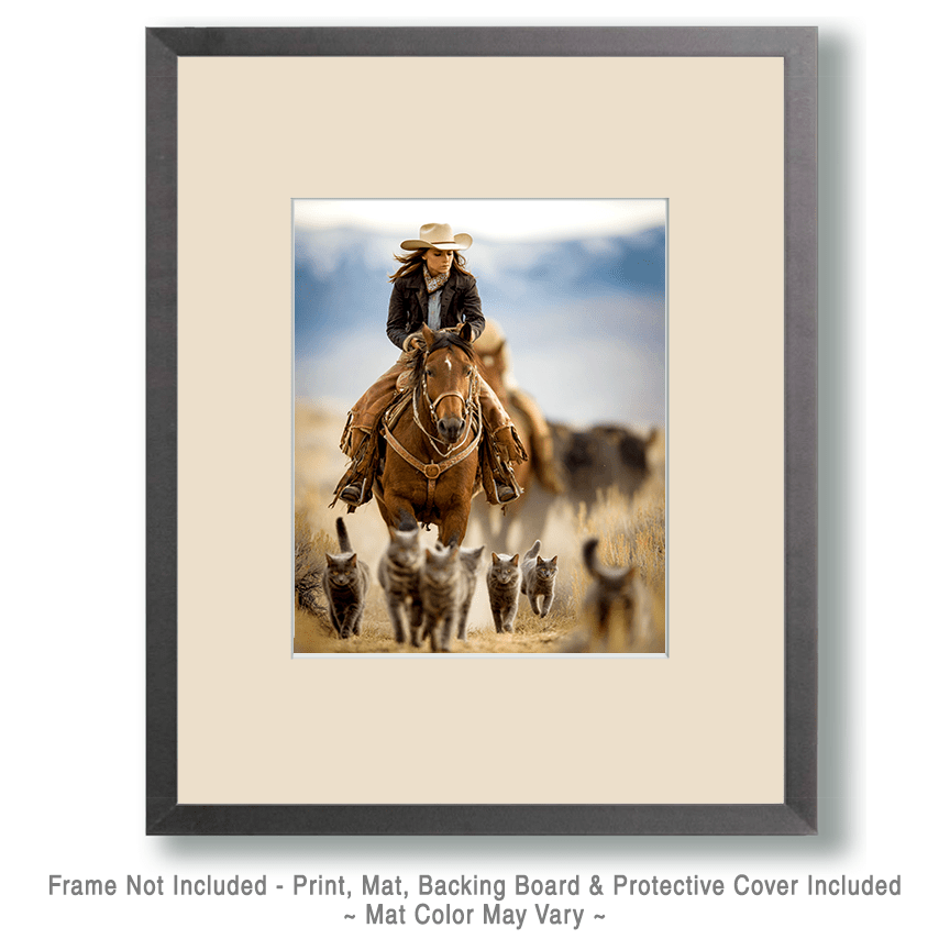 Art prints featuring cowgirls and cats have gained popularity for their playful blend of Western grit and feline charm, appealing to a wide audience that appreciates both independent spirit and whimsical personality.