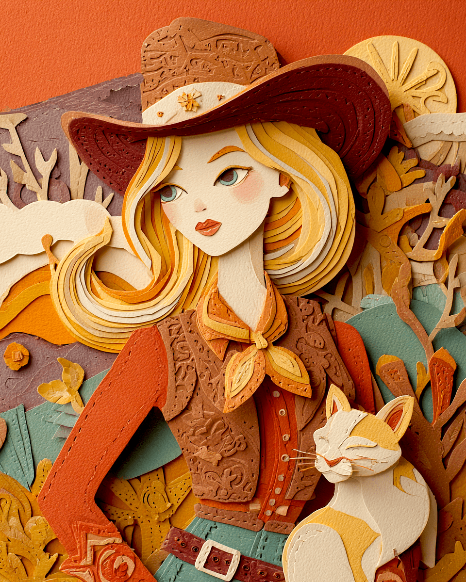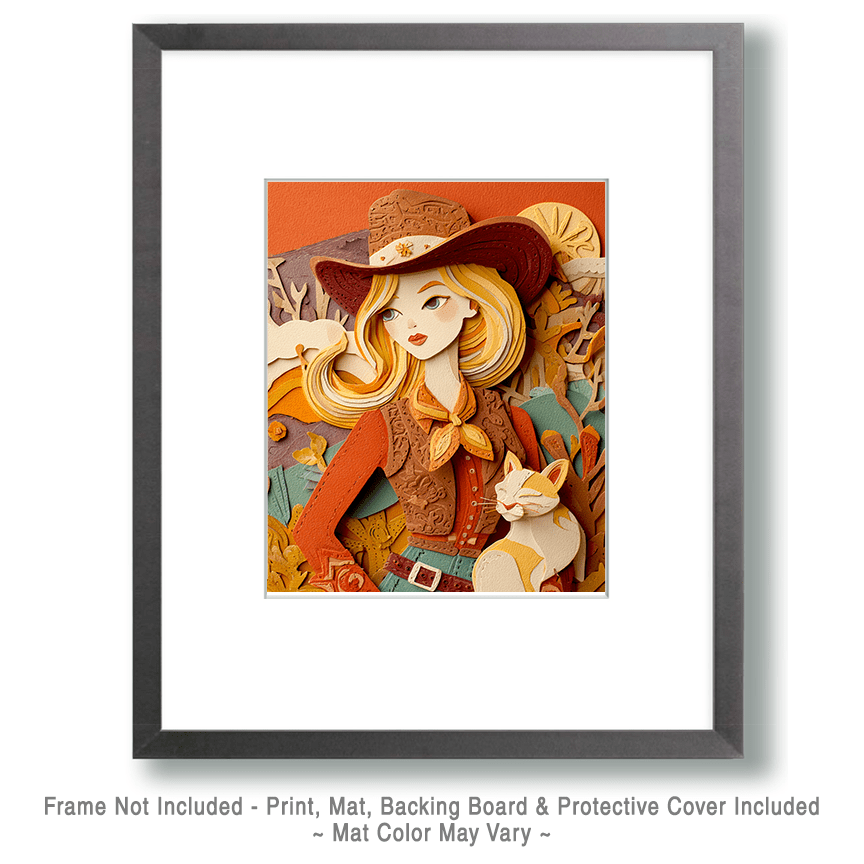 Cowgirl Jessica & Her Cat – Cut Paper Style Home Decor Wall Art