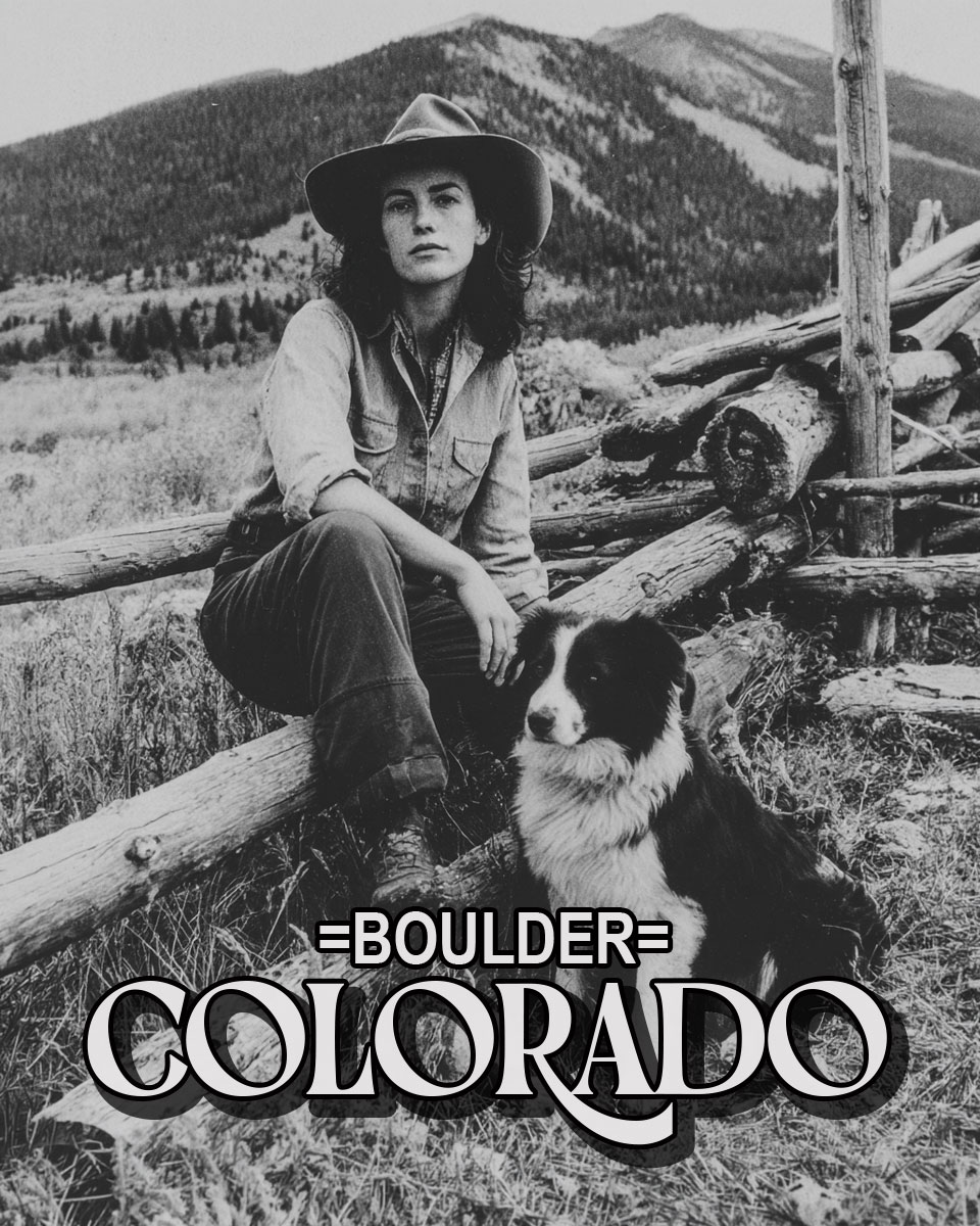 Cowgirl with Her Border Collie – Boulder Colorado Souvenir Art Print