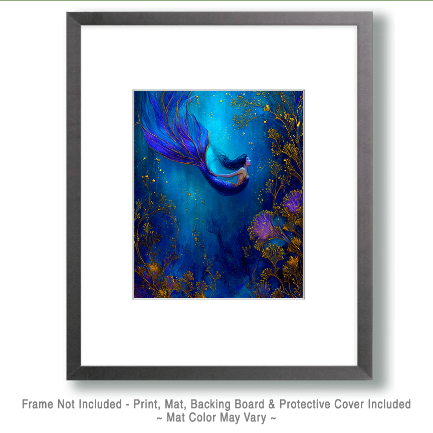 Deep Blue Mermaid Ocean Theme Home Decor Wall Art