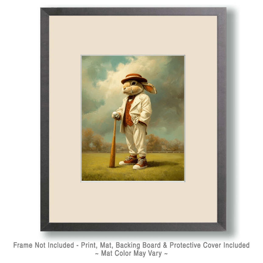 Rabbit Baseball Player Anthropomorphic Home Decor Wall Art
