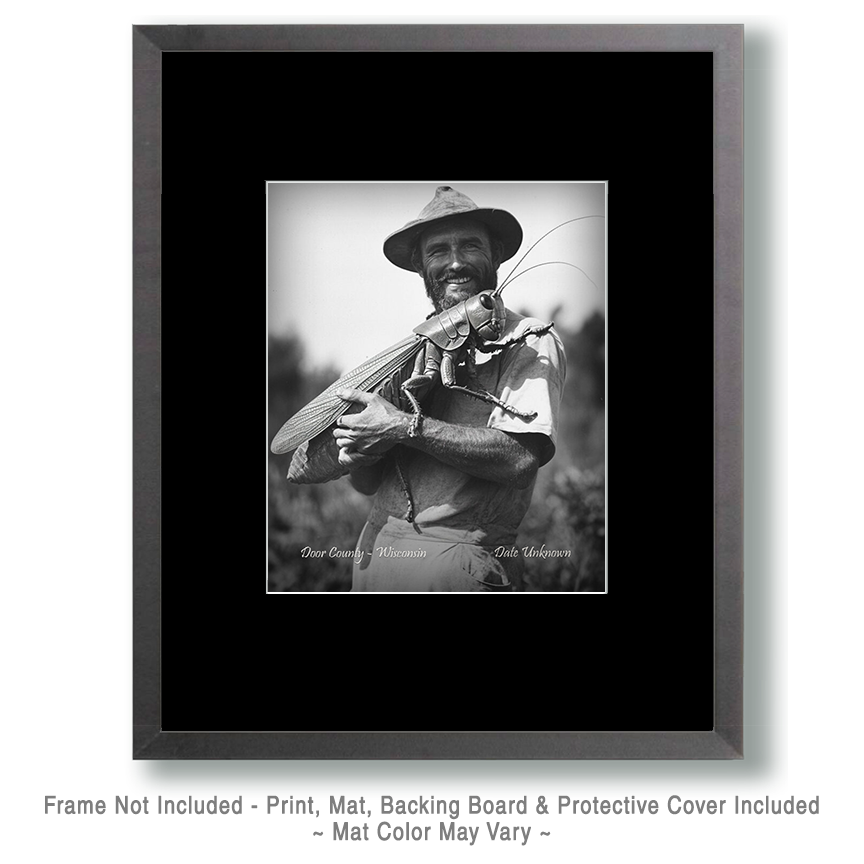 Door County, Wisconsin – Holding Giant Grasshopper – Vintage Style Agriculture Cryptid Photo