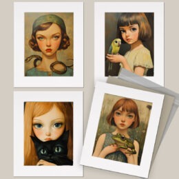 Elsie and Parakeet – Big Eyes Not Quite Low Brow Wall Art Print