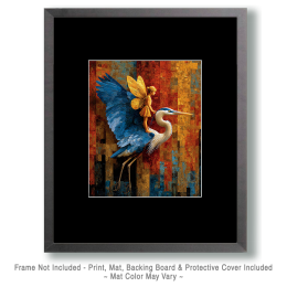 Fairy Hitching a Ride with a Great Blue Heron – Faires Art Print