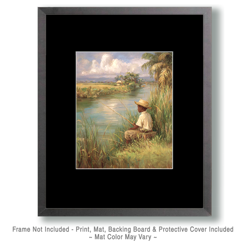 Art prints of children fishing fit beautifully into interiors that emphasize warmth, nostalgia, and connection to the outdoors, making kids fishing art prints easy to style throughout the home. Lake house decor and cabin decor naturally complement the peaceful storytelling of fishing wall art, while rustic and farmhouse interiors enhance the charm of outdoor family art with wood textures and soft neutral tones. In modern farmhouse and cozy cottage spaces, simple framing allows nature lifestyle wall art to stand out as a heartfelt focal point, making these pieces a meaningful and giftable addition to living rooms, bedrooms, and vacation homes alike.