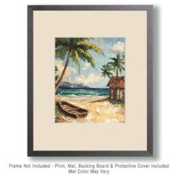 Folk Art Old Boat – Rustic Farmhouse Decor 8″x10″ Artwork – 11″x14″ Mat