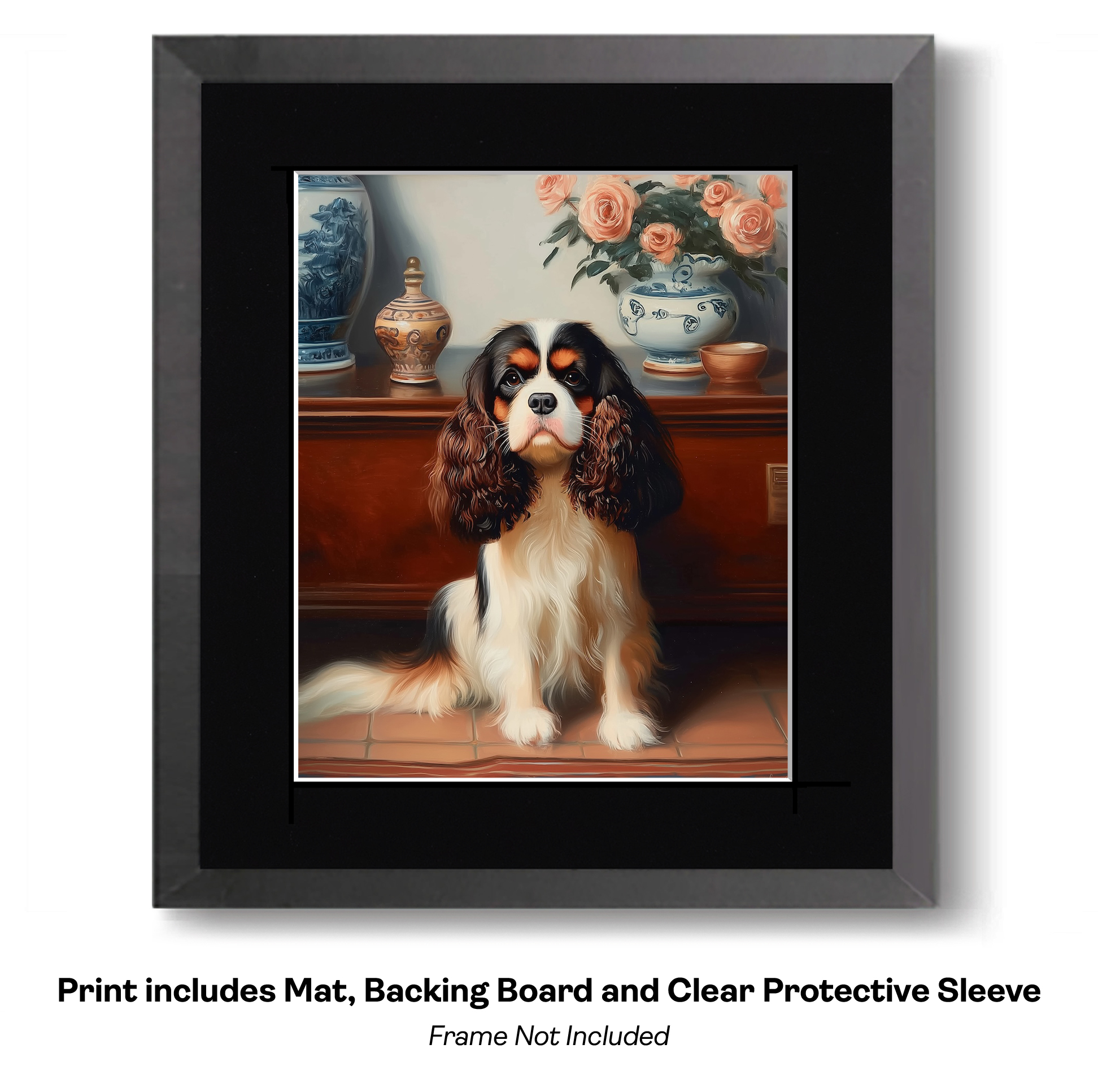 Formal Portrait of Bentley the Cavalier King Charles Dog Portrait Wall Art Prints – 8″x10″ Artwork for 11″x14″ Frame