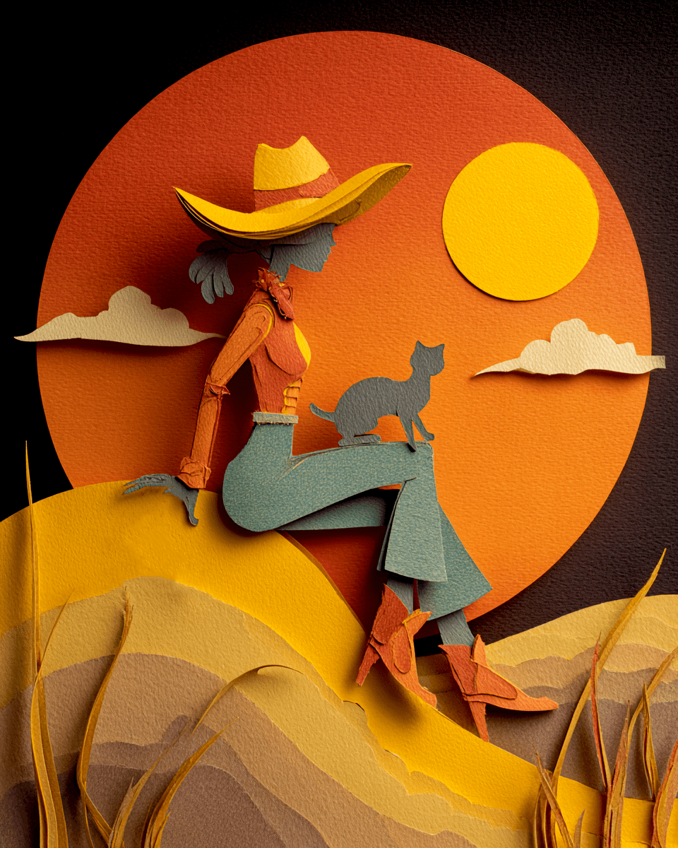 Full Moon Cowgirl & Cat – Cut Paper Style Home Decor Wall Art