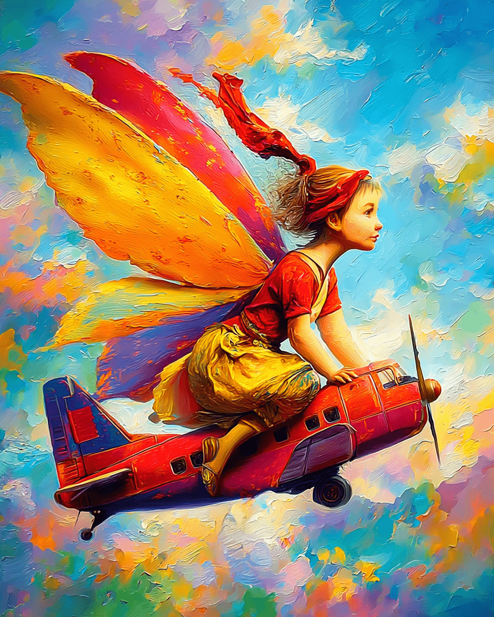 Fun Fairy Airplane Ride Mythical Home Decor Wall Art