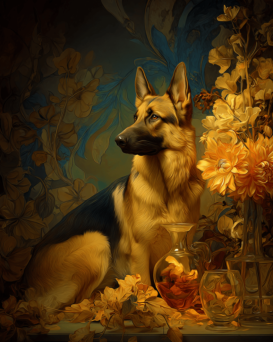 German Shepherd Nouveau Pet Dog Art Print – 8″x10″ Artwork