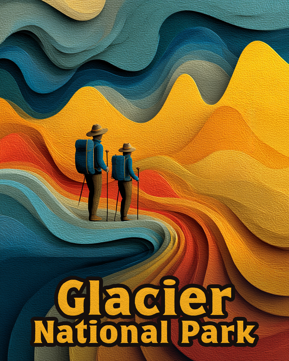 Retro 60’s Style Mountain Hiking Path – Glacier National Park Wall Art