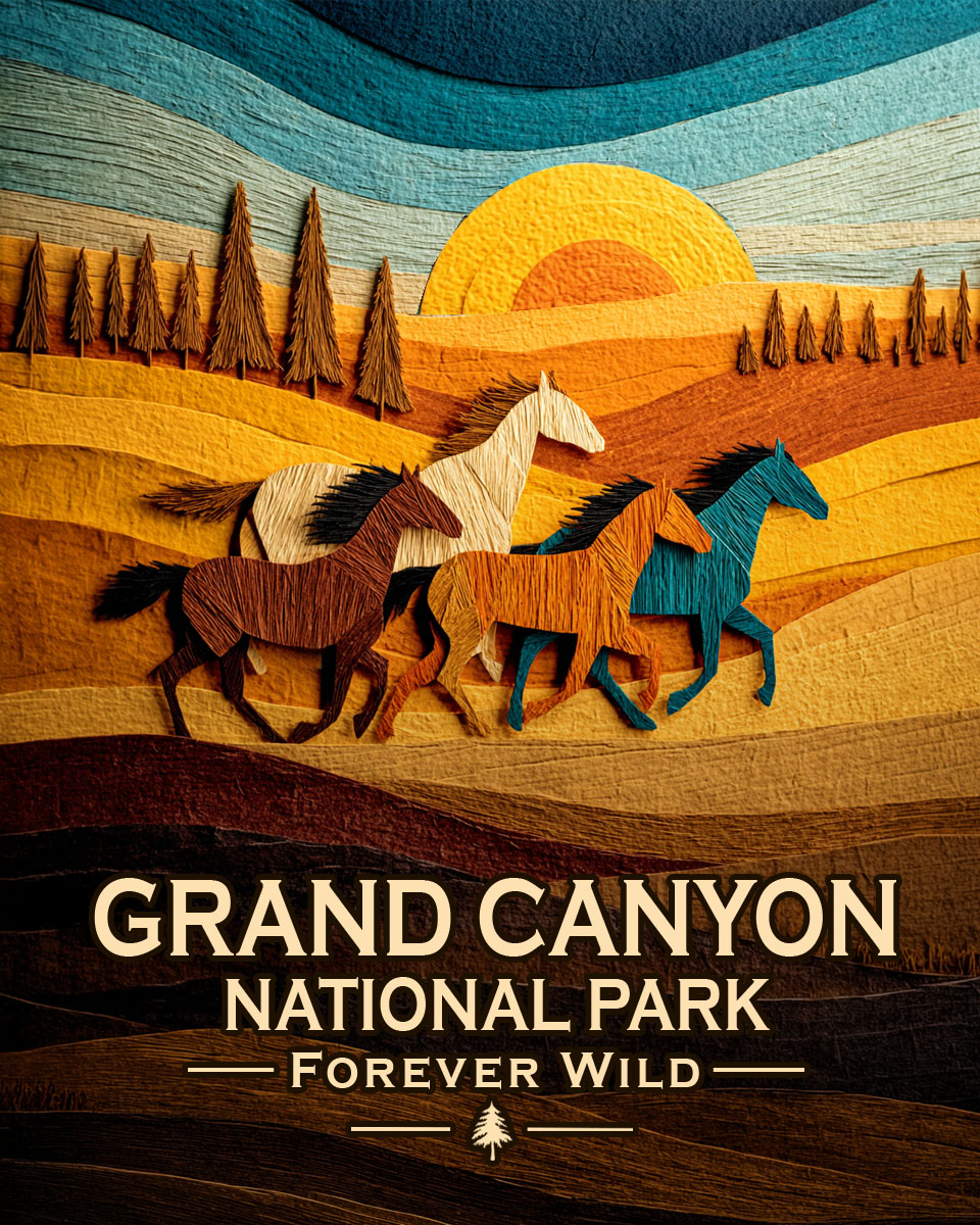 Grand Canyon National Park Arizona – Forever Wild Horse Scene Souvenir Art Print
