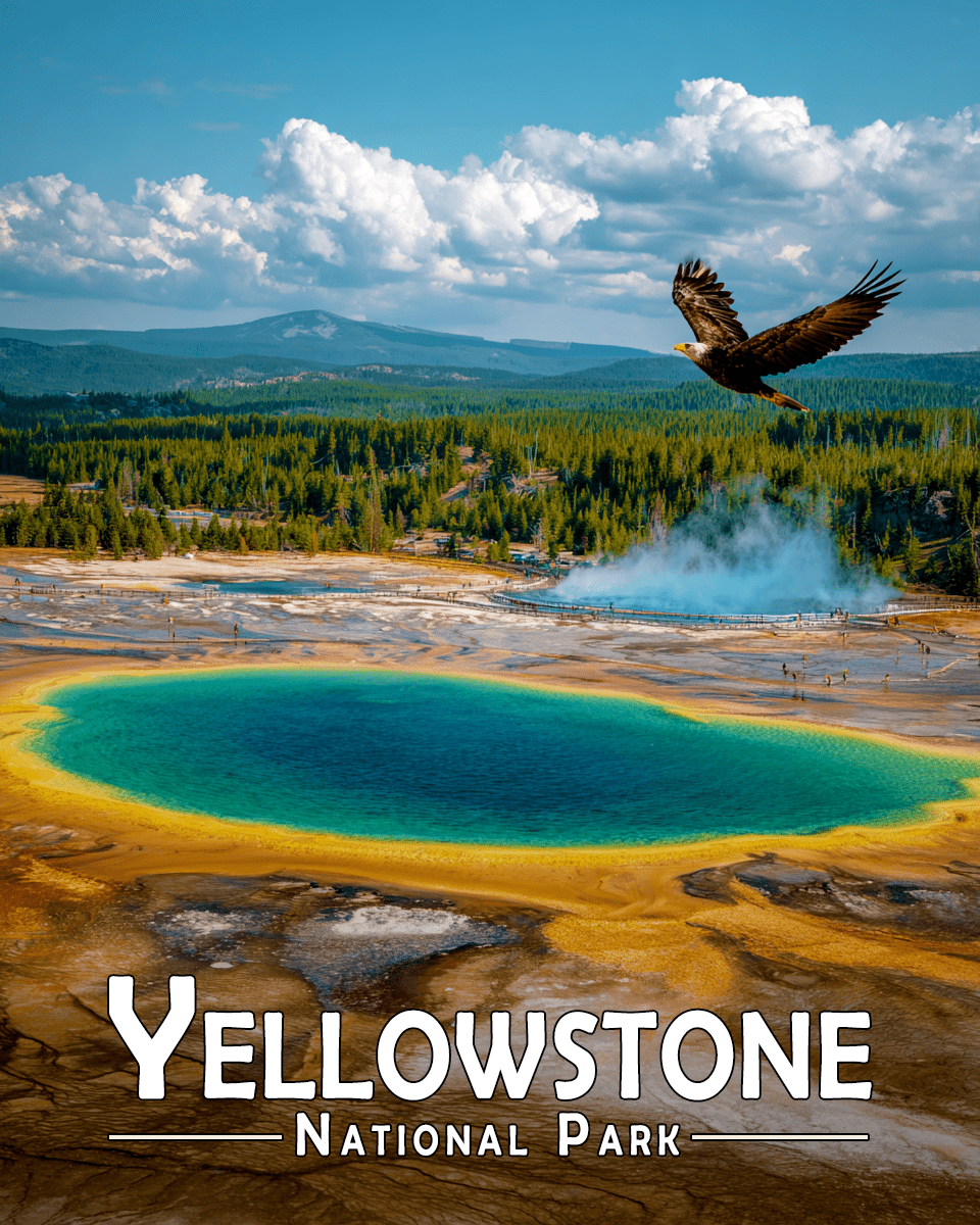 Bald Eagle Over Prismatic Springs Yellowstone National Park Souvenir Home Decor Wall Art