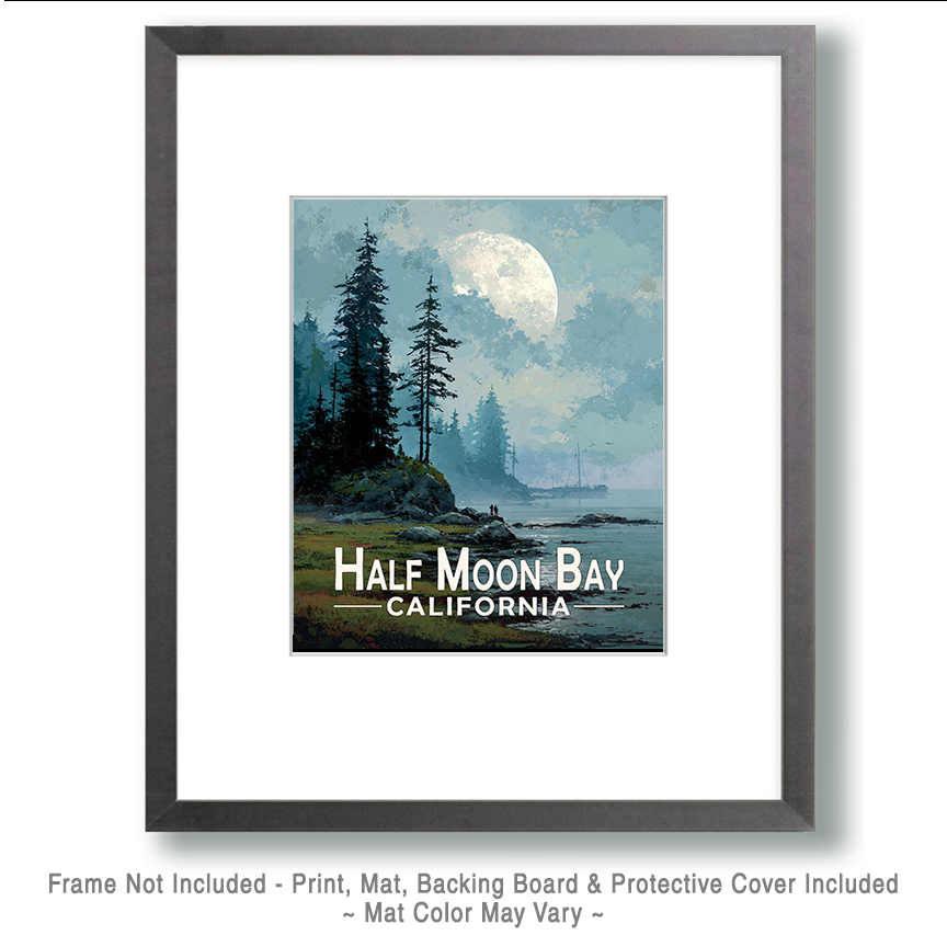 Half Moon Bay California Souvenir Art Print – Full Moon Rising