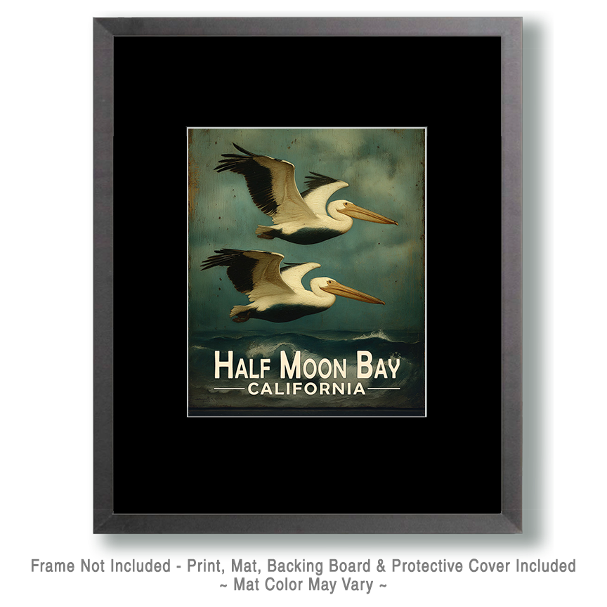 Half Moon Bay California Souvenir Art Print – Pelicans Flying By