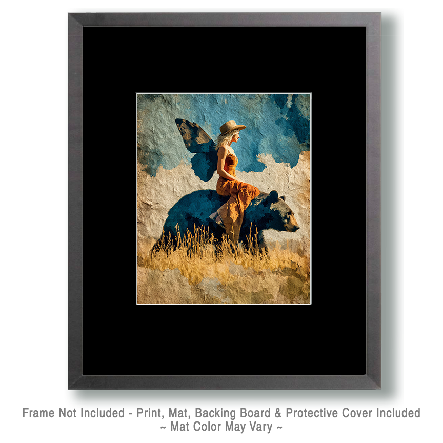 Hitching a Ride on a Black Bear – Fairy Art Print
