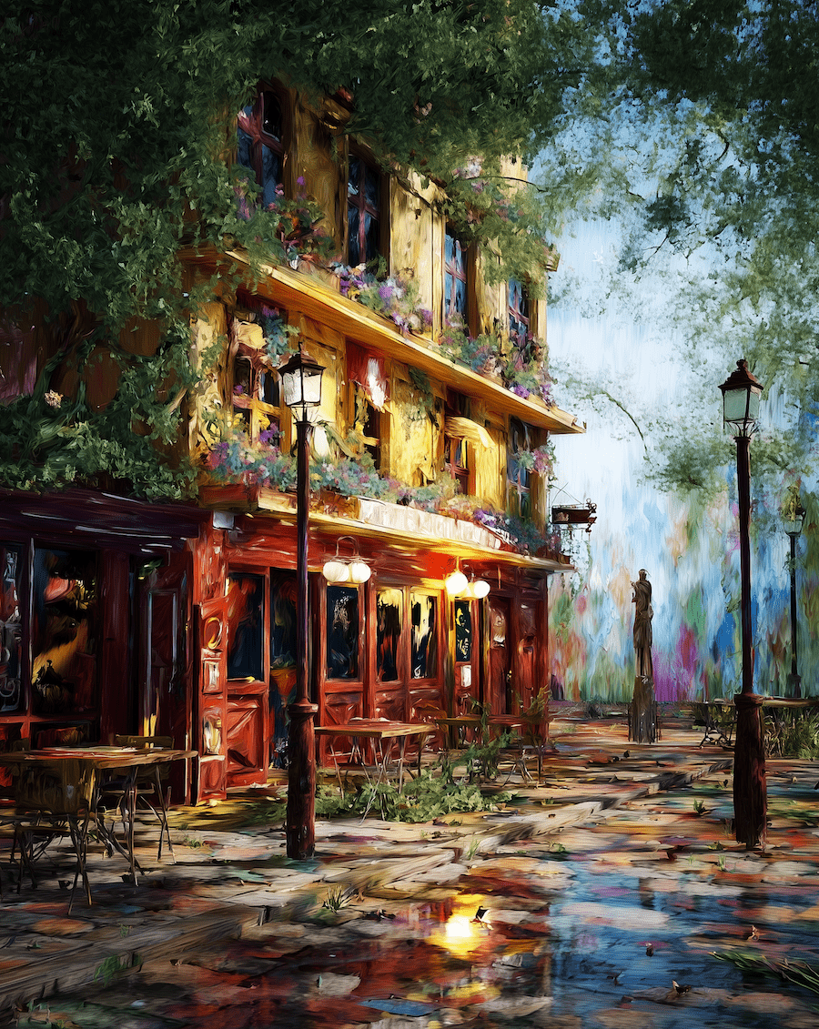 Impressionism Cafe Street after the Rainfall: Impressionism 8”x10” Art Print