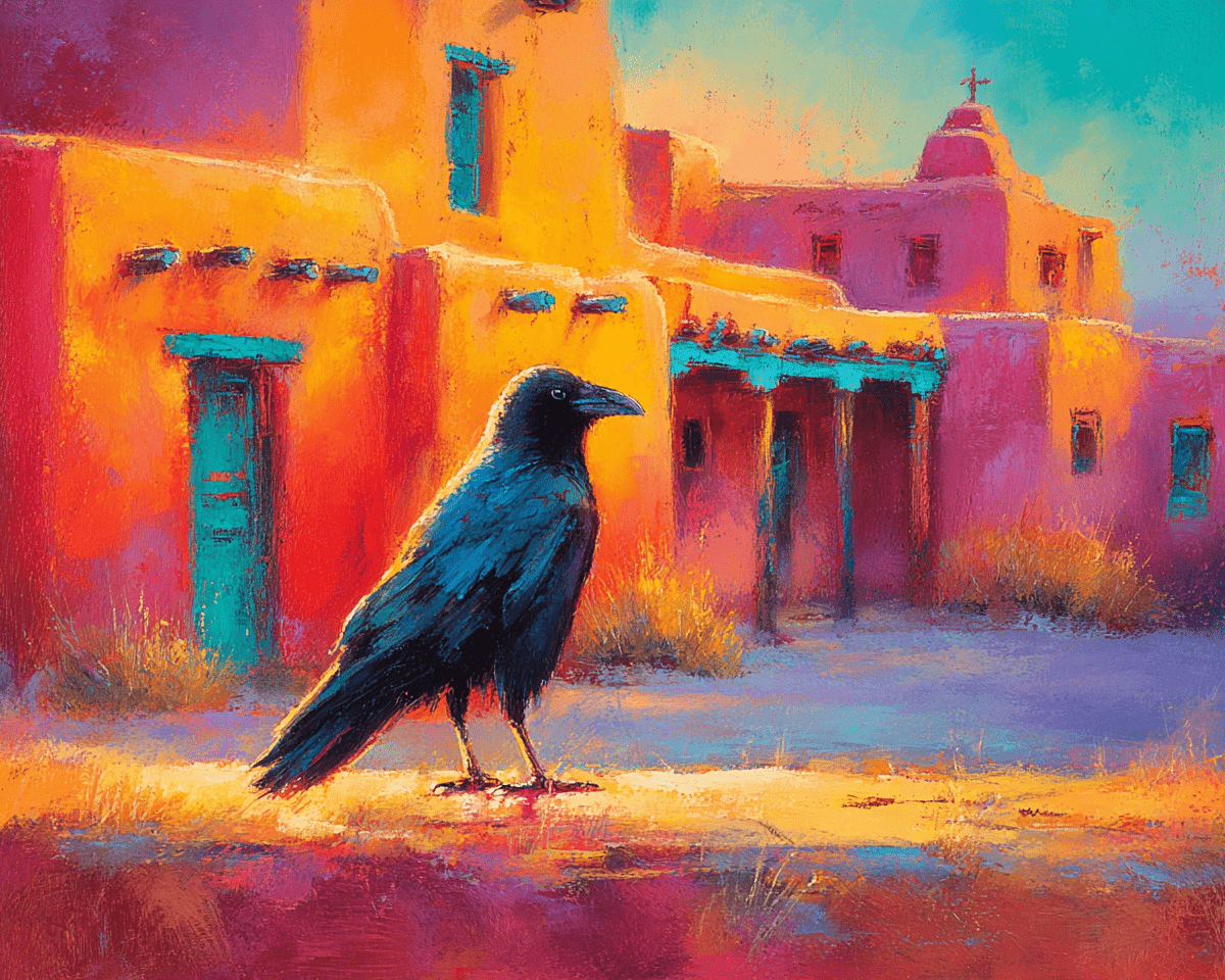 Impressionist Sonoran Desert Raven Southwest Home Decor Wall Art