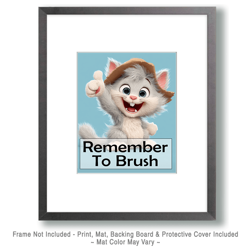 Kitten “Remember to Brush” Kid’s Art Print – 8″x10″ Artwork