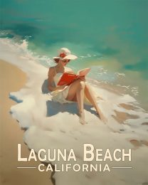 Laguna Beach California Souvenir Art Print – Oblivious Reader on the Beach