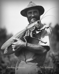 Lanesboro, Minnesota – Holding Giant Grasshopper – Vintage Style Agriculture Cryptid Photo