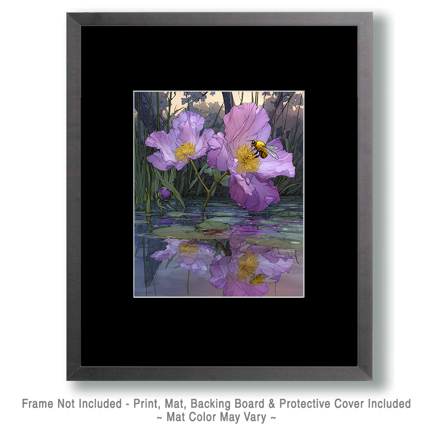 All prints have an acid-free matte with a cardboard backing board and are packaged in a clear protective bag.