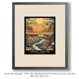 The artwork in this collection includes minimalist, vintage, nouveau, folk art, and retroGrand Canyon park posters.