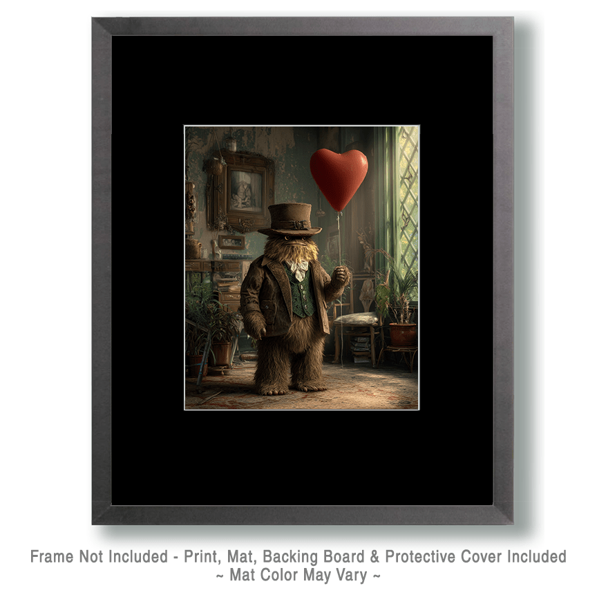 Littlefoot with a Red Heart Balloon – Bigfoot & Sasquatch Home Decor Wall Art