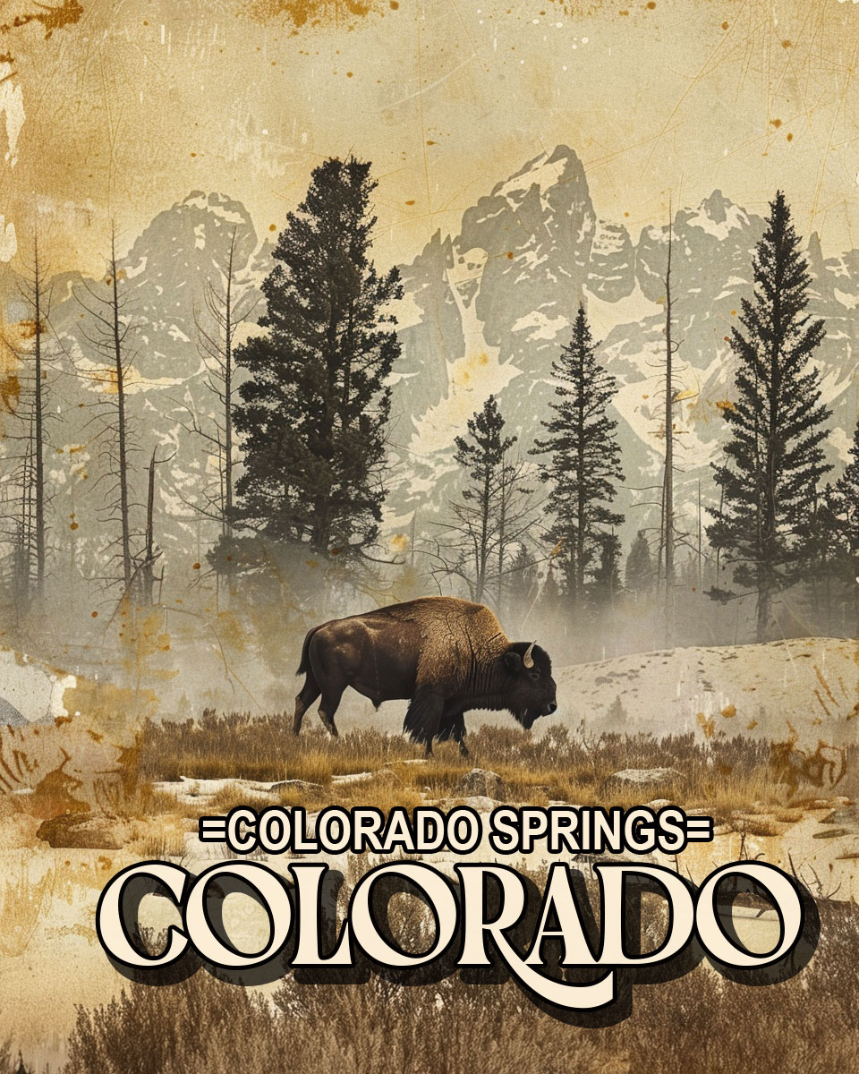 Lone Bison in the High Country – Colorado Springs Souvenir Art Print