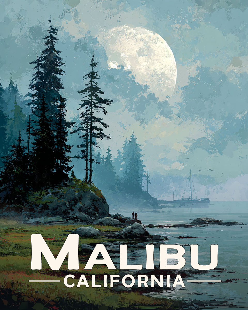 Malibu California Souvenir Art Print – Full Moon Rising