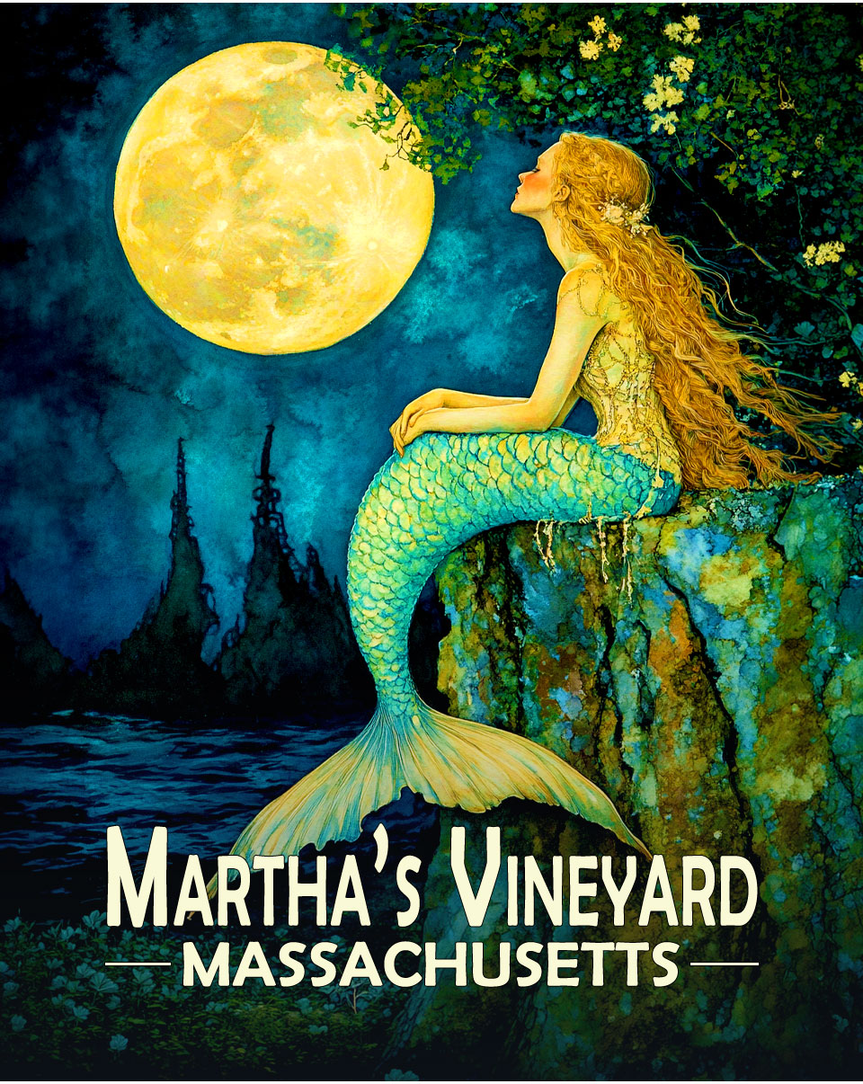 Martha’s Vinyard, Massachusetts Souvenir Art Print – Contemplating Mermaid