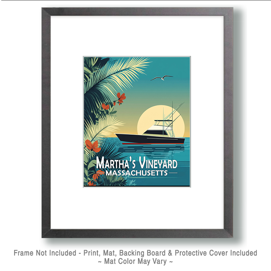Martha’s Vinyard, Massachusetts Souvenir Art Print – Yacht at Sunrise
