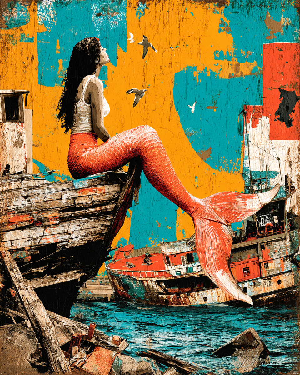Mermaid on Shipwreck – Pop Surrealism Wall Art