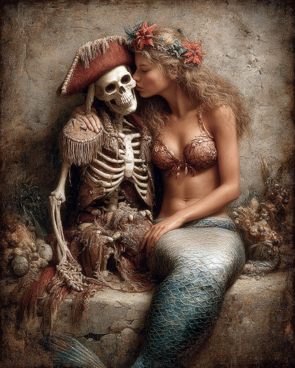 Mermaid With Her New Lover Wall Art Print