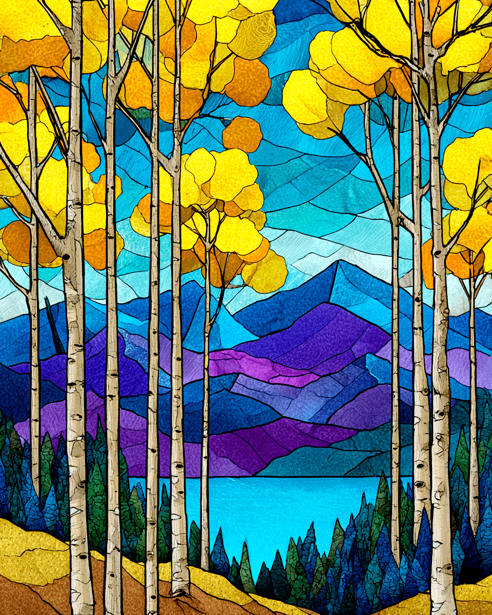 Stylized Mountain Aspens Nature Home Decor Wall Art