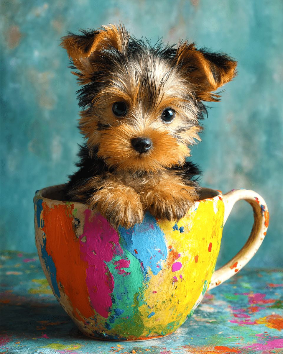 Mini Lil Yorkshire Terrier Puppy – Pup in a Cup – Pet Dog Decor Wall Art