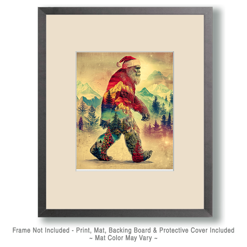 Mountain Walk Bigfoot Santa Claus Christmas Home Decor Wall Art