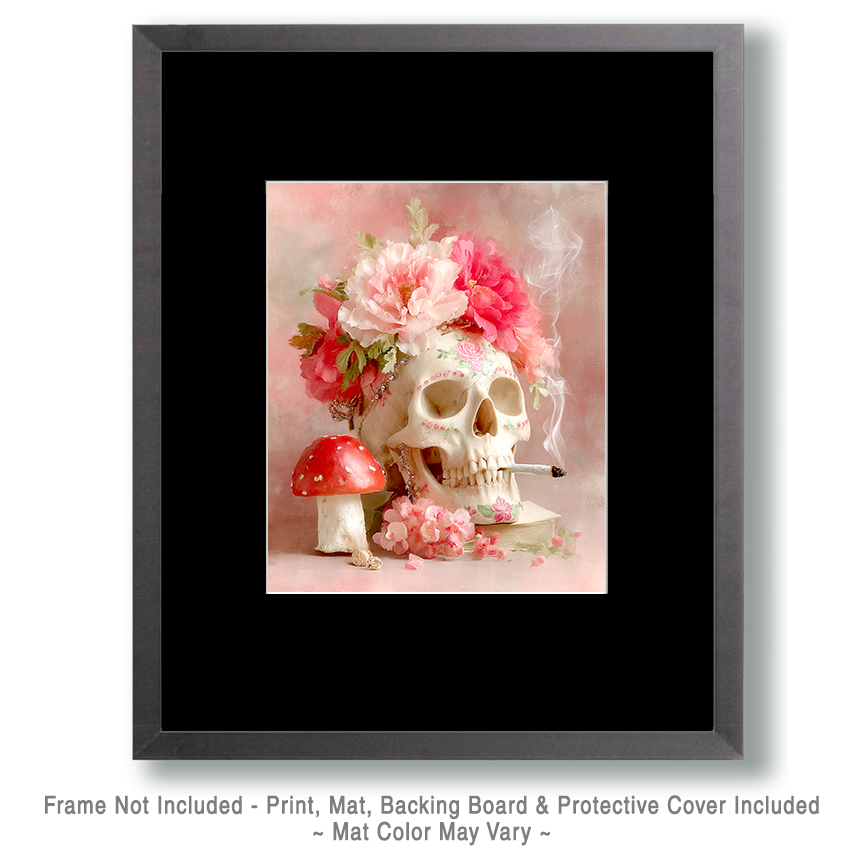 Pink Skull Smoking Marijuana Still-Life – Magic Mushroom Artwork