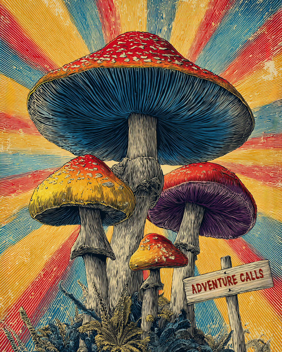 Vintage Sunburst Magic Mushroom Art Print – Magic Mushroom Artwork