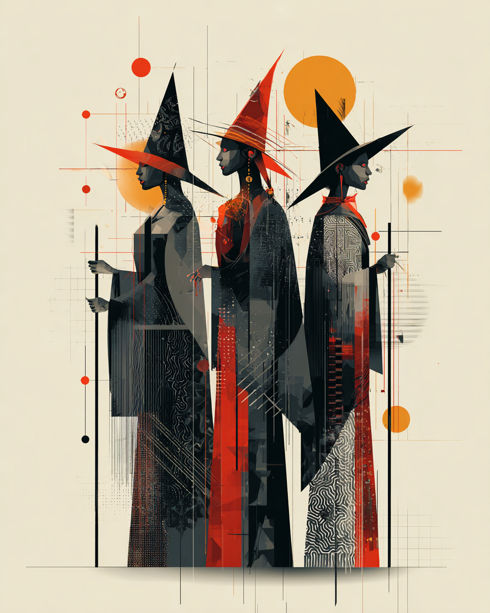 Mid-Century Modern Three Witches – Whimsigoth Witchcore Home Decor