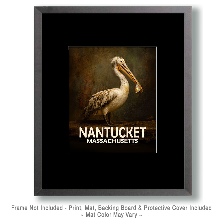 Nantucket, Massachusetts Souvenir Art Print – Pellican with Fish