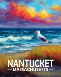 Nantucket, Massachusetts Souvenir Art Print – Seagull on a Beach at Sunset