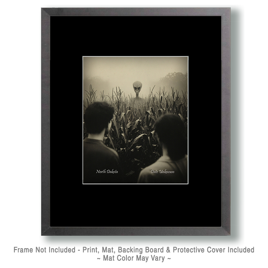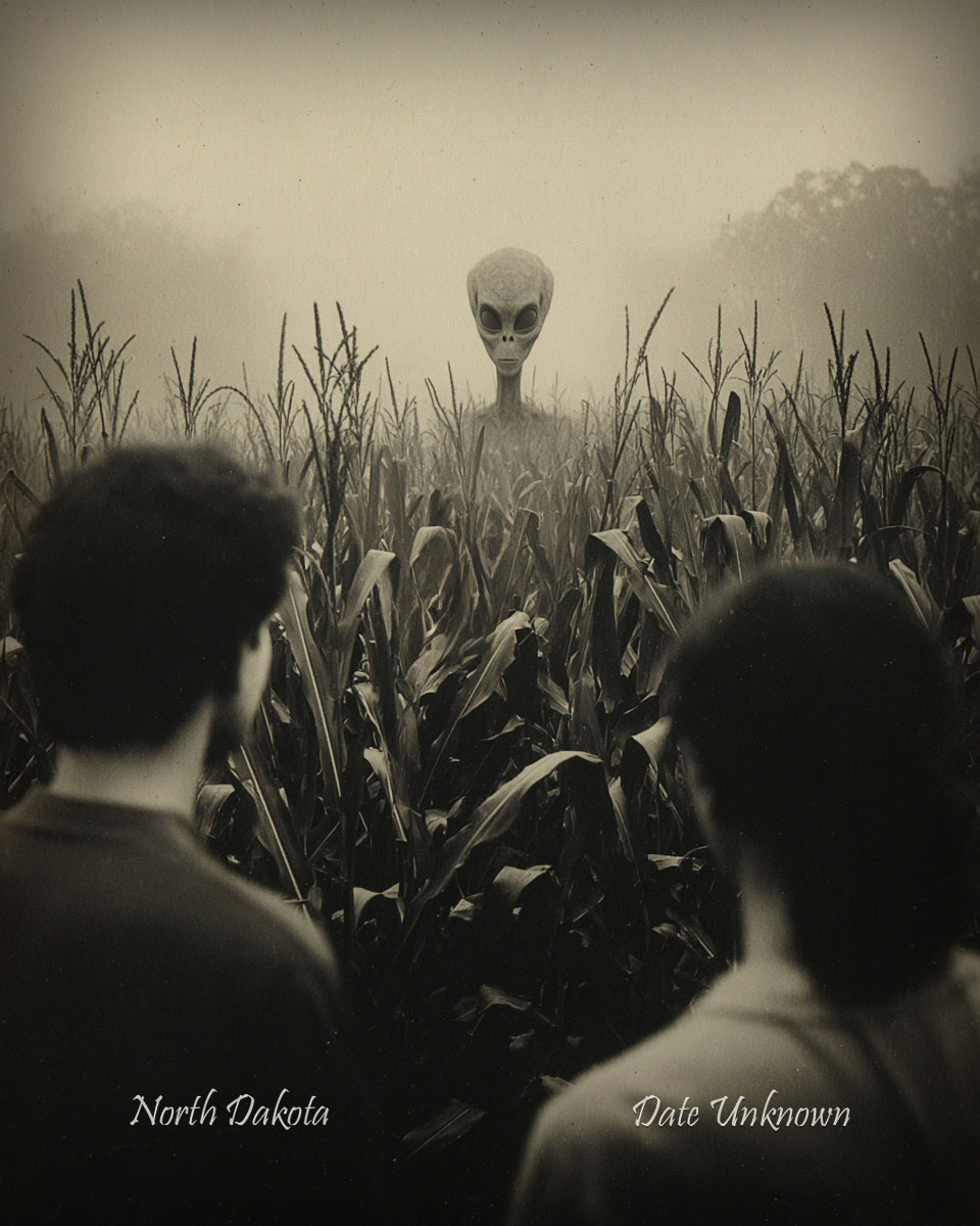North Dakota – Alien Pops Up – Vintage Style Agriculture Cryptid Photo