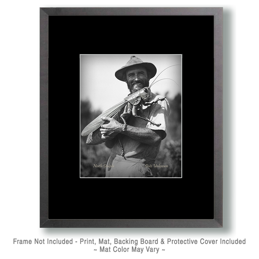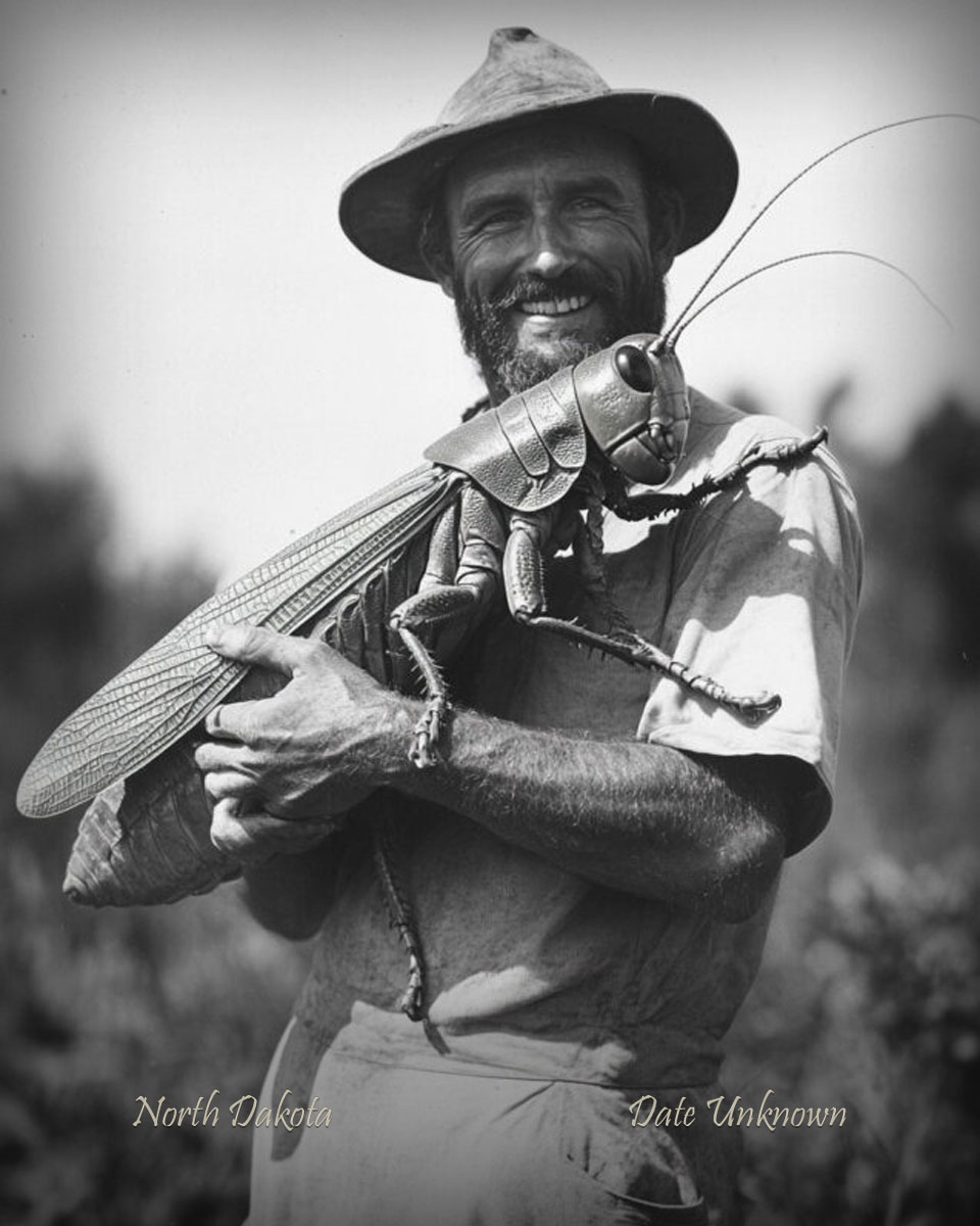 North Dakota – Holding Giant Grasshopper – Vintage Style Agriculture Cryptid Photo