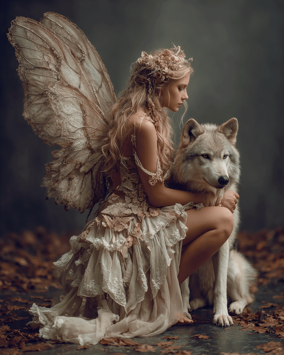 Northern Fairy with Her Wolf – Fairies 8″x10″ Artwork for 11″x14″ Frame