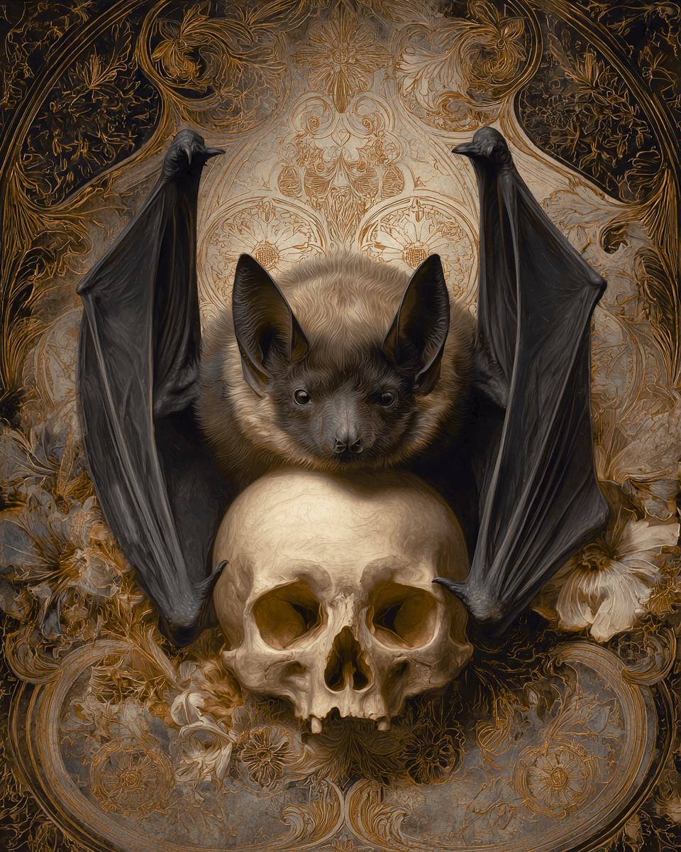 Nouveau Bat on Skull – Goth Dark Academia Home Decor Wall Art