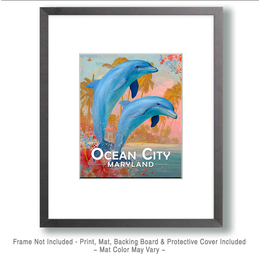 Ocean City, Maryland Souvenir Art Print – Pair of Dolphins Jumping