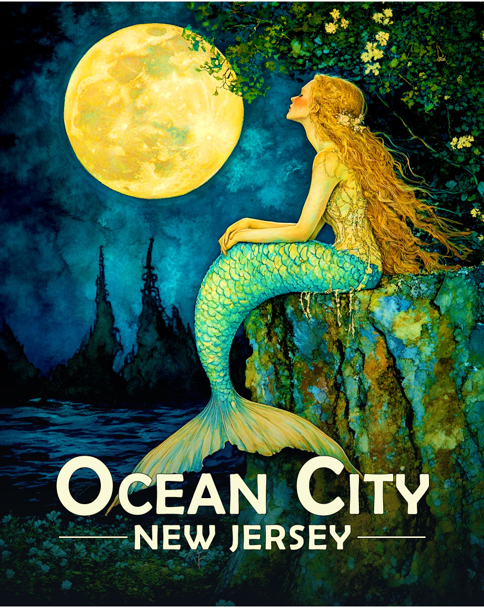 Ocean City, New Jersey Souvenir Art Print – Contemplating Mermaid