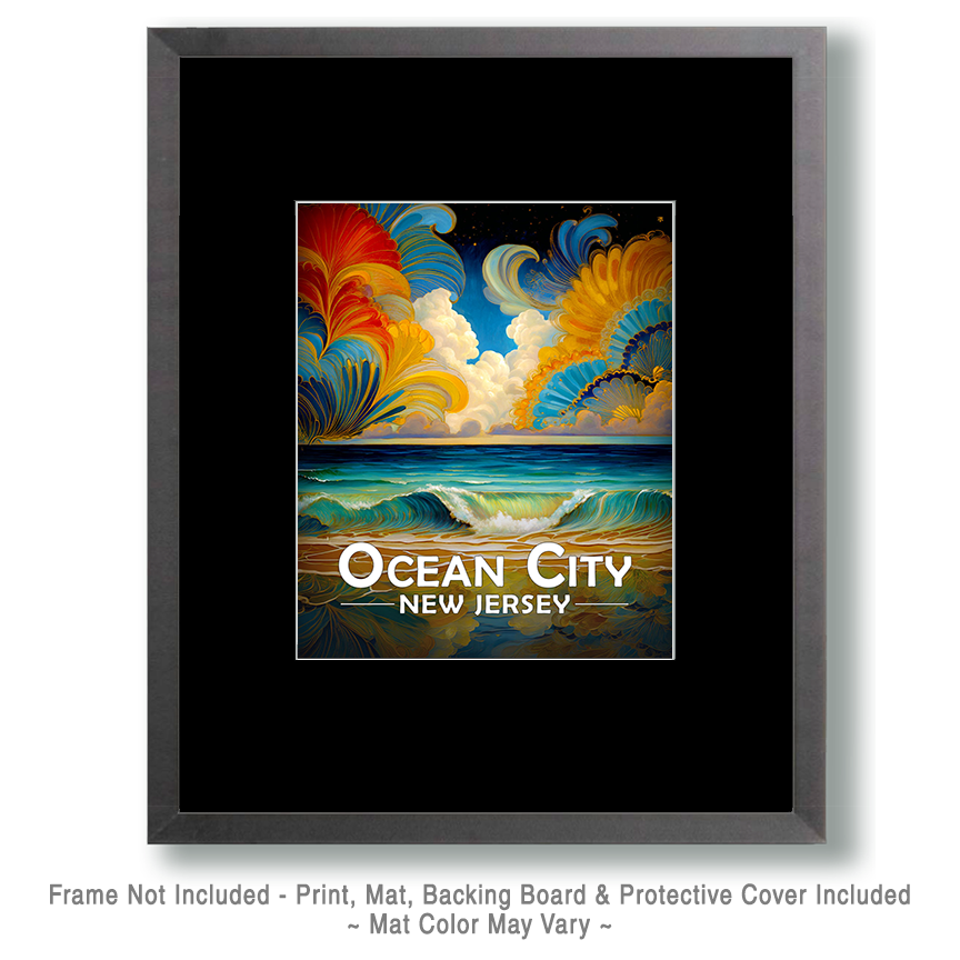 Ocean City, New Jersey Souvenir Art Print – Full Moon Rising on the Coast